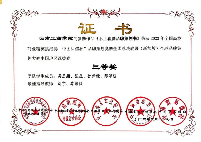 工商管理本科专业在2023年云南省高校本科专业综合评价中均获评C级,同类院校全省排名第二。