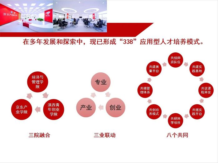 与京东共建京东产业学院,构建“三院融合、三业联动、八个共同”的产教融合协同育人新生态,并与京东集团、字节跳动、华为、阿里巴巴、谷歌、苏宁、昆药集团等知名企业建立持久稳定的校企合作关系。校企共建课程15门,共建实验室7间,共建实践教学基地30余家。