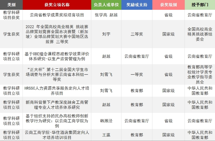 工商管理专业属于校级优势特色专业、重点专业,曾获云南省级教学团队、精品课程、校外示范实训基地等省级质量工程项目。