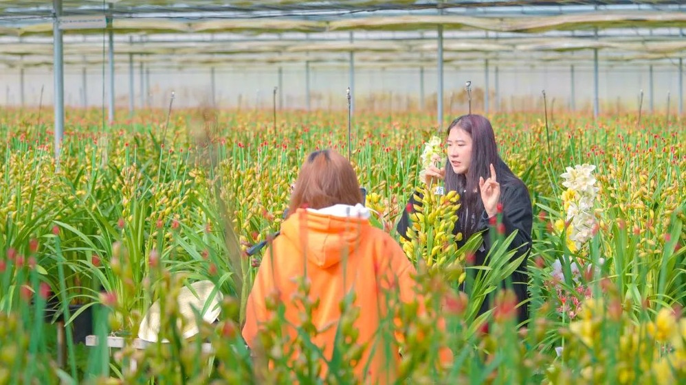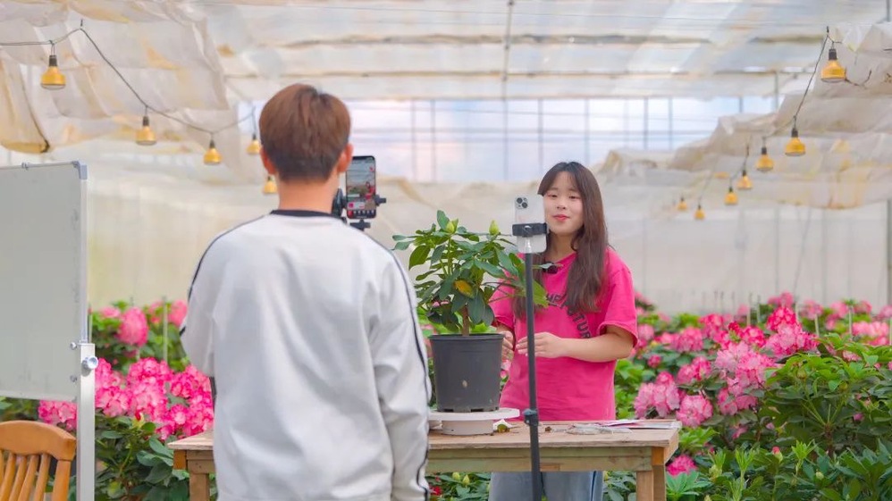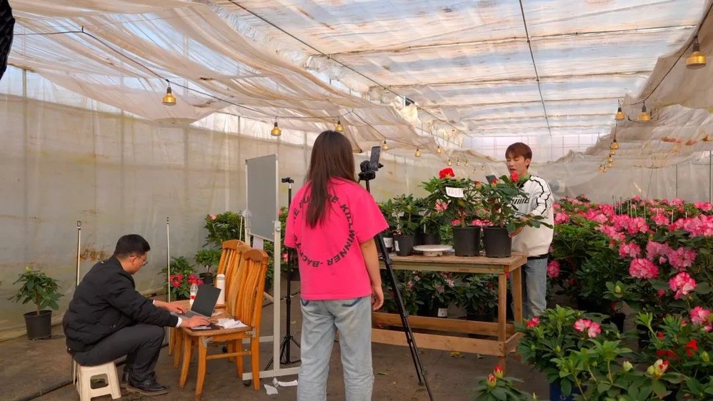 眼下正值高校放假时间,云南工商学院的大学生们在学校校企合作单位——云南绿山源农业科技有限公司大花蕙兰种植基地和嵩明昊霖苗木种植有限公司高山杜鹃盆花新品种示范基地里将农业科普、文化传承、科学技术带入农产品直播间,发挥高校文化优势、资源优势和大学生智力优势、知识优势,打造大学生助农直播间,深化产教融合,推动乡村振兴。