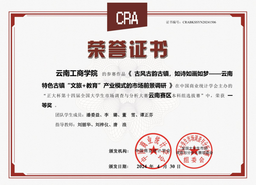 近日,云南工商学院教育学院在“正大杯”第十四届全国大学生市场调查与分析大赛中荣获(专科组)国赛二等奖,(本科组)省赛一等奖。