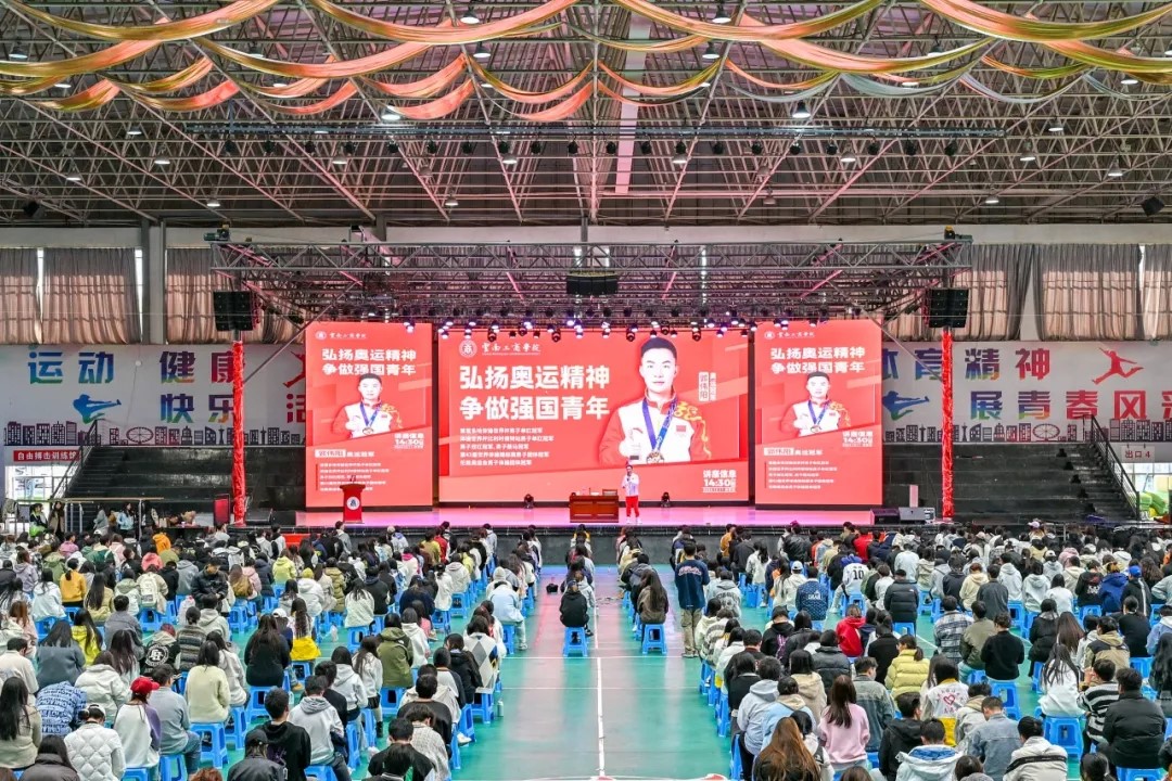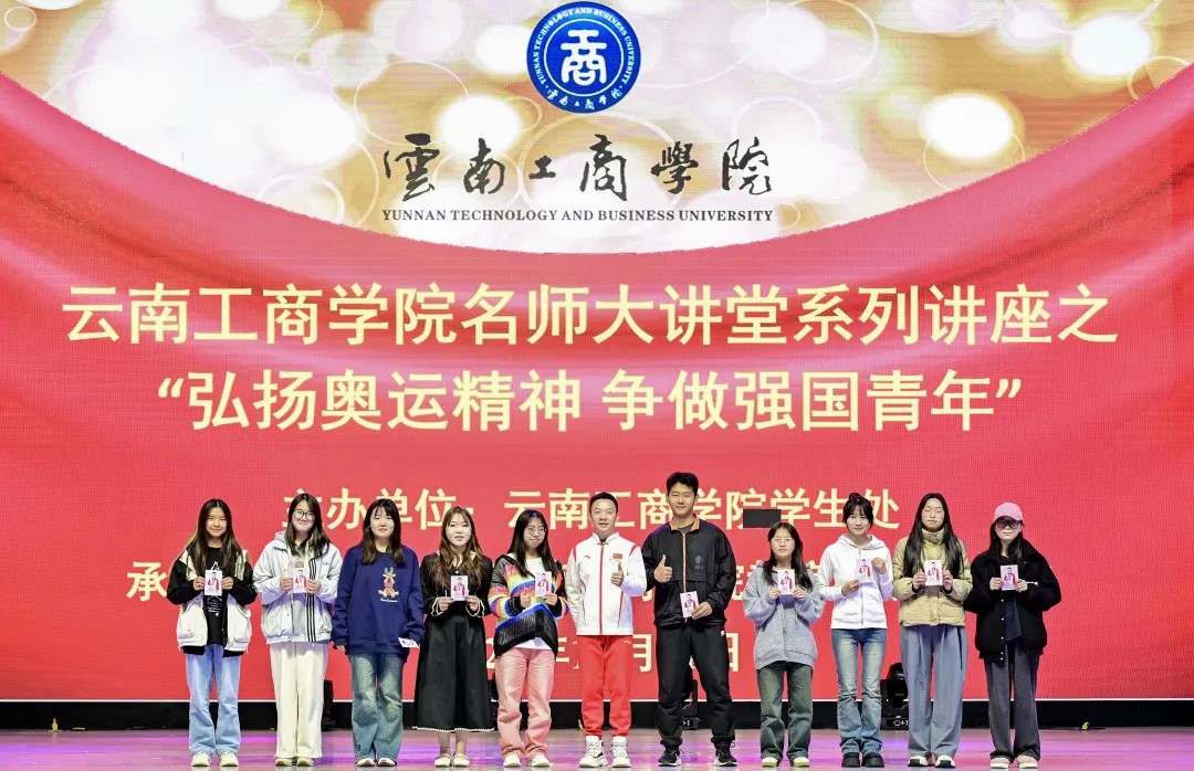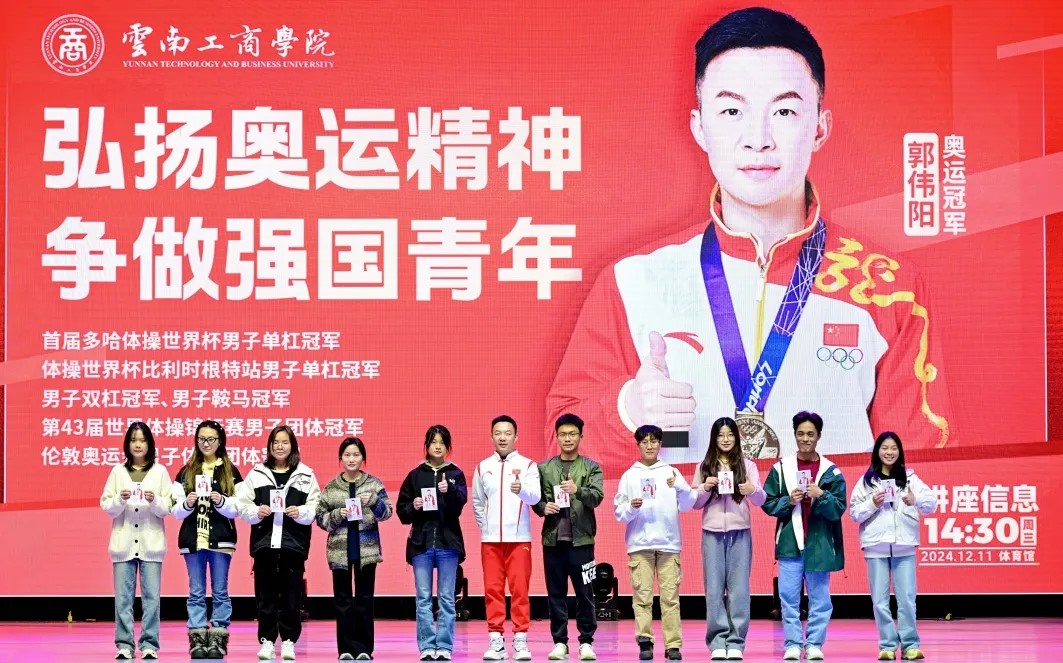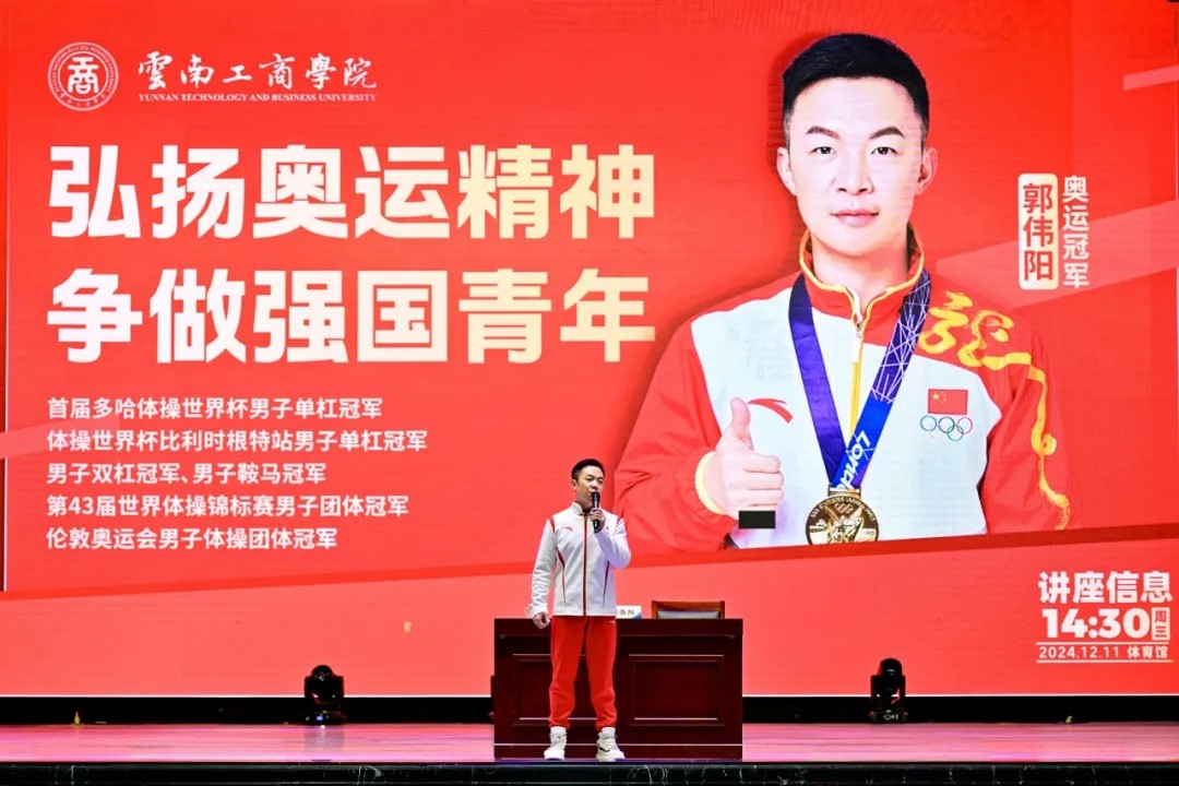 为响应体育强国的时代号召,让奥运精神在校园熠熠生辉,带动广大学子关注奥运、热爱体育、参与运动,充分感受中国体育精神,进一步提升学生的身体素质与体育素养。12月11日,云南工商学院邀请奥运冠军郭伟阳来校开展名师大讲堂之“弘扬奥运精神,争做强国青年”专题讲座。学校领导及各二级学院学生代表参加讲座。