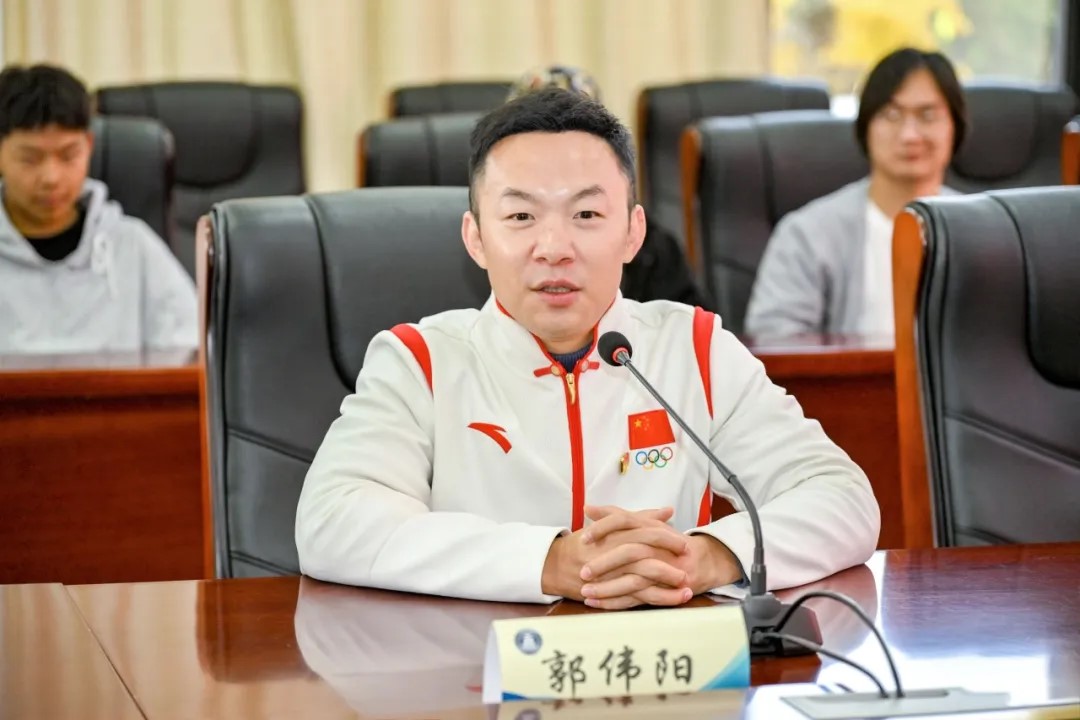 讲座现场氛围热烈,通过郭伟阳精彩的讲解,加深了现场学生对体操运动的了解,激发了他们对体育运动的热爱和对梦想的追求。讲座后,郭伟阳与学生亲切交流并合影留念,并与学校体育社团30余名骨干就体育相关问题进行座谈交流。同学们表示,通过此次活动,不仅近距离感受了奥运冠军的风采和魅力,也看到了成功背后的努力和坚持,奥运精神在此刻变成了具象化,在未来的学习生活中,将继续弘扬中华体育精神,以强健体魄勇担时代使命,勇敢追梦、砥砺前进、追求卓越,在中国式现代化进程中绘制挺膺担当的青春篇章。